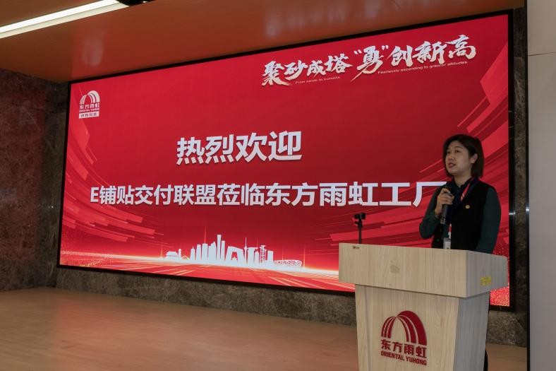 本次会议荣幸地邀请到东方雨虹民建集团的王奕女士担任主持。她代表东方雨虹热烈欢迎E铺贴交付联盟一行的莅临并表示期待通过本次会议为未来双方的合作奠定坚实的基础。