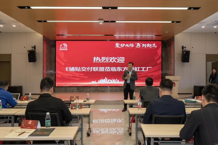 会议伊始,东方雨虹砂粉科技贸易有限公司总经理姜树伟先生,发表致辞。姜总首先对E铺贴交付联盟一行的到来表示欢迎,对联盟长久以来对东方雨虹的信任与支持表示感谢。他表示,希望未来双方能够充分发挥各自专业优势,不断创新合作模式,实现优势互补、互利共赢。