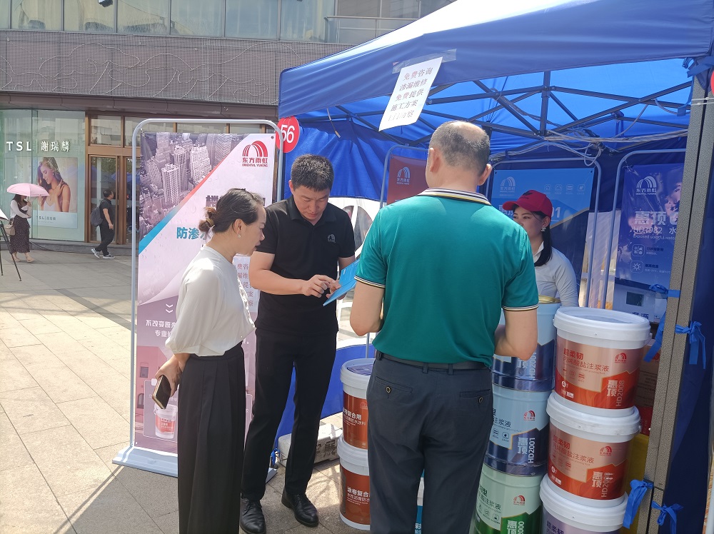 东方雨虹海南公司联合合伙人海南元熙建材有限公司携“惠顶”维修系列产品参加义卖活动,并在现场为居民提供免费的渗漏维修诊断服务。东方雨虹海南公司总经理陈志超表示,三天义卖所有的收入最后将全部捐赠给省残疾人基金会,助力海南公益事业。