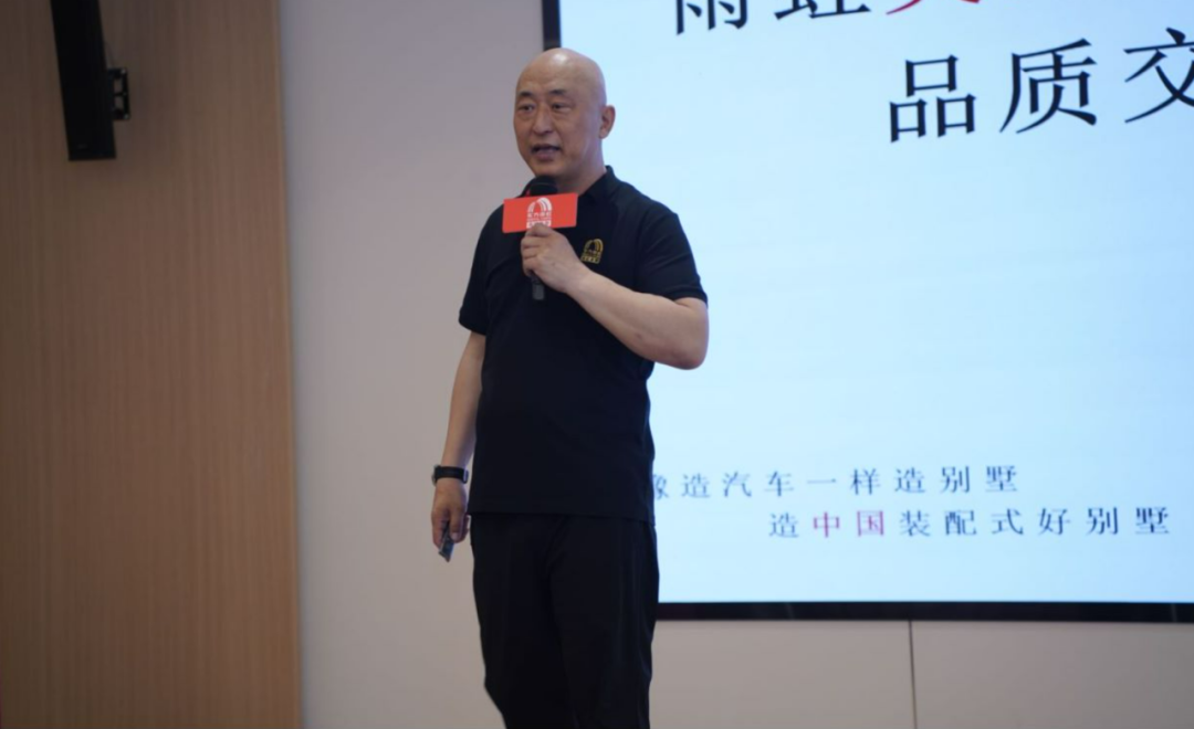 何宗宝先生在讲话中围绕“像造汽车一样造别墅”的雨虹美墅核心理念进行详尽讲解。他表示,通过标准化、模块化、智能化的生产方式,雨虹美墅能够以高品质、高标准、高水平的装配式别墅满足用户需求。同时,依托东方雨虹强大的产业链和渠道网络,雨虹美墅还将为用户提供全面的维修保养服务,打造“无忧”居住体验。