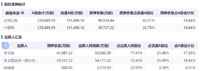 更令人担忧的是,李卫国及其一致行动人李兴国所持股份已陷入高比例质押的困境。最新数据显示,二人累计质押股份达3.92亿股,质押比例高达72.43%,相当于上市公司总股本的16.43%。这些质押股份即将面临集中到期压力:其中3.64亿股(占其持股67.14%)将在一年内到期,涉及融资余额15.48亿元;更有2.54亿股(占其持股46.96%)将在半年内到期,需偿还10.64亿元融资款。