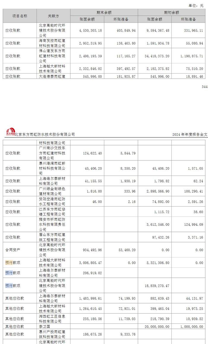 图片说明:2024年度东方雨虹实控人及其附属企业资金占用情况(披露时间2025年2月),数据来源于公告