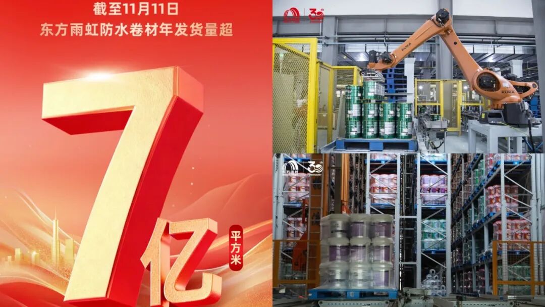 在建筑防水领域,7亿平方米的年发货量是东方雨虹多年构建的智能制造体系与全球供应链协同能力的集中爆发。按此规模测算,公司每日防水卷材发货量超200万平方米,每分钟发货量突破1500平方米,这样的交付效率背后,是东方雨虹全球近70家生产研发物流基地构建的产业生态网络在持续发力。生产端,东方雨虹引进美国阿迪、意大利柏阿图等国际顶级生产线,并自主研发有胎无胎多功能组合型卷材生产线,实现“全球化配置+本土化创新”的设备布局;管理端,“无人车间”“黑灯车间”已成为数字化工厂的标准配置,上百套数字化系统打通研产供销服全链路,从原材料采购到施工过程的每一个环节都实现精准管控;仓储物流端,“无人仓”系统仅需两名员工即可完成全基地仓储和发货工作,生产效率较传统模式提升4.2倍,真正实现从制造到交付的高效协同。