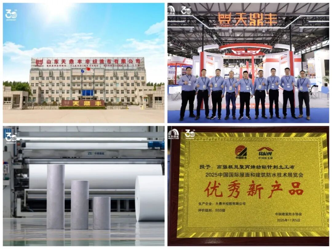 与防水主业的规模突破相呼应,东方雨虹旗下天鼎丰在非织造布领域的表现同样可圈可点,10亿平方米的年度发货量进一步巩固了其全球领先的非织造布智造地位。在2025中国防水展会上,天鼎丰凭借核心技术与明星产品矩阵成为展会焦点——其高强粗旦聚丙烯纺粘针刺土工布获评展会“优秀新产品”,成为行业技术标杆。作为国内非织造布领域领军企业,天鼎丰的成绩不仅是自身实力的证明,更完善了东方雨虹“防水卷材+配套基材”的全产业链布局,形成1+1>2的协同效应。