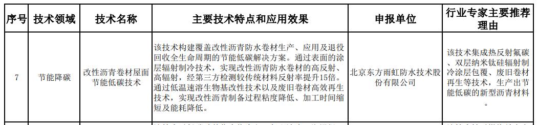 近日,北京市发展改革委员会发布《北京市绿色低碳先进技术推荐目录(2025年)》,东方雨虹“改性沥青卷材屋面节能低碳技术”入选。这标志着东方雨虹在绿色建材领域技术创新成果获权威认可,对行业应用有指导意义。