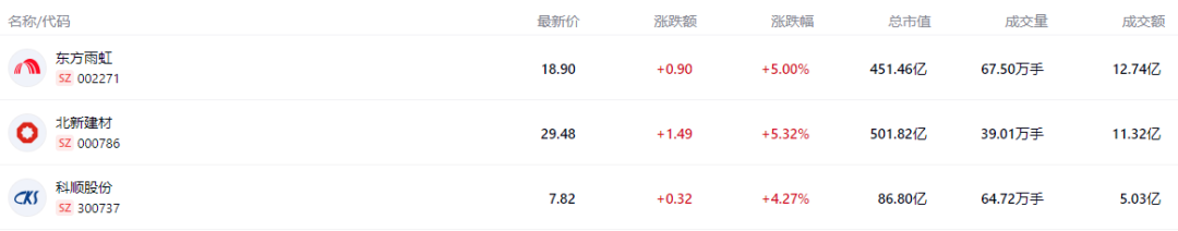 2026年3月2日,防水板块成为资本市场一抹亮色:截至收盘,北新建材报收29.48元,上涨5.32%,总市值501.82亿元;东方雨虹上涨5.00%,收于18.90元,总市值451.46亿元;科顺股份报收7.82元,上涨4.27%,总市值86.80亿元。