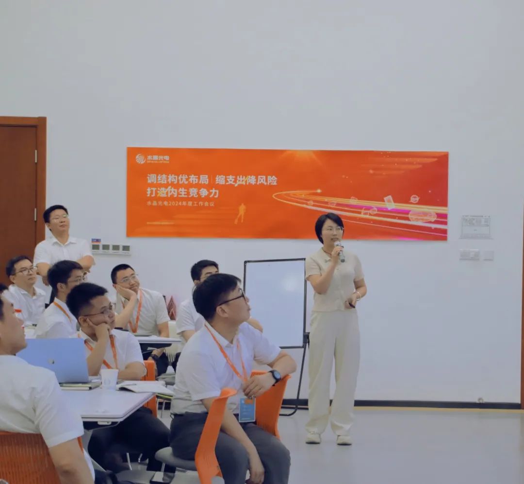6月28日-29日,水晶光电2024年半年度工作会议在公司综合楼勤学厅隆重召开,公司董事长林敏、董事兼总经理王震宇、领导班子以及管理干部等80余人出席此次会议,共同总结分享上半年的工作成果,讨论下半年和2025年的经营规划。