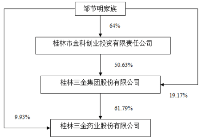 桂林三金与实控人之间的产权及控制关系。图片来源:2020年年报截图