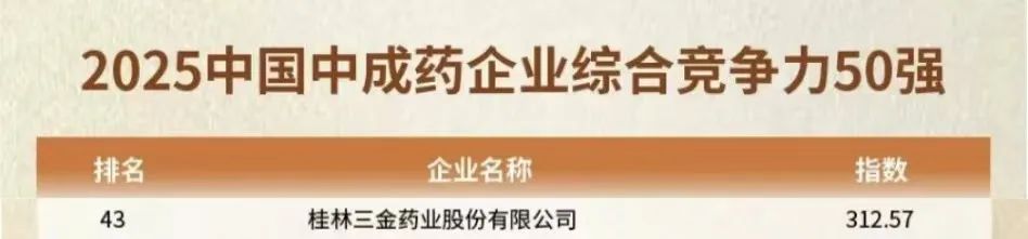 桂林三金凭借过硬的综合实力以及在中成药领域的卓越表现,成功入选“2025中成药工业综合竞争力50强”。这一殊荣彰显了桂林三金在中医药行业的领先地位和强劲的发展潜力。