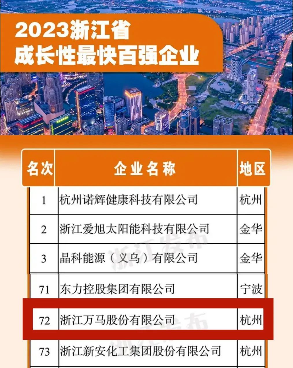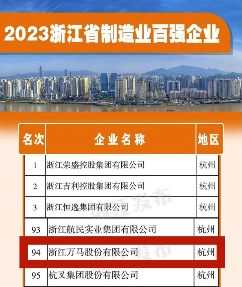 其中,万马股份入围《2023浙江省制造业百强企业》《2023浙江省成长性最快百强企业》两项榜单,分列94与72位。