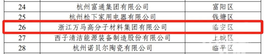 万马股份入围《2023杭州市综合百强企业》,位列42位;万马高分子入围《2023杭州市制造业百强企业》,位列26位。