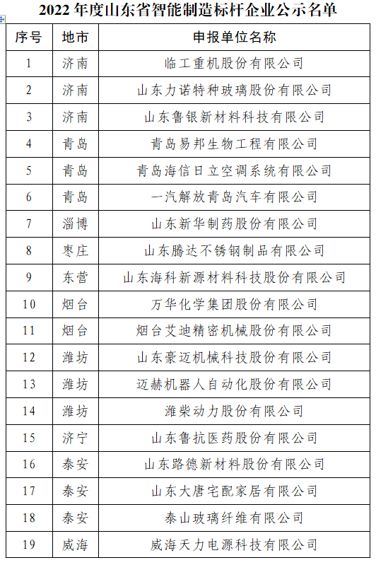 按照省工业和信息化厅《关于组织开展2022年度山东省智能制造标杆企业申报工作的通知》要求,经企业申报、地市推荐、专家评审等程序,按照公平公正、兼顾行业的原则,我市保龄宝生物股份有限公司入选2022年山东省智能制造标杆企业。