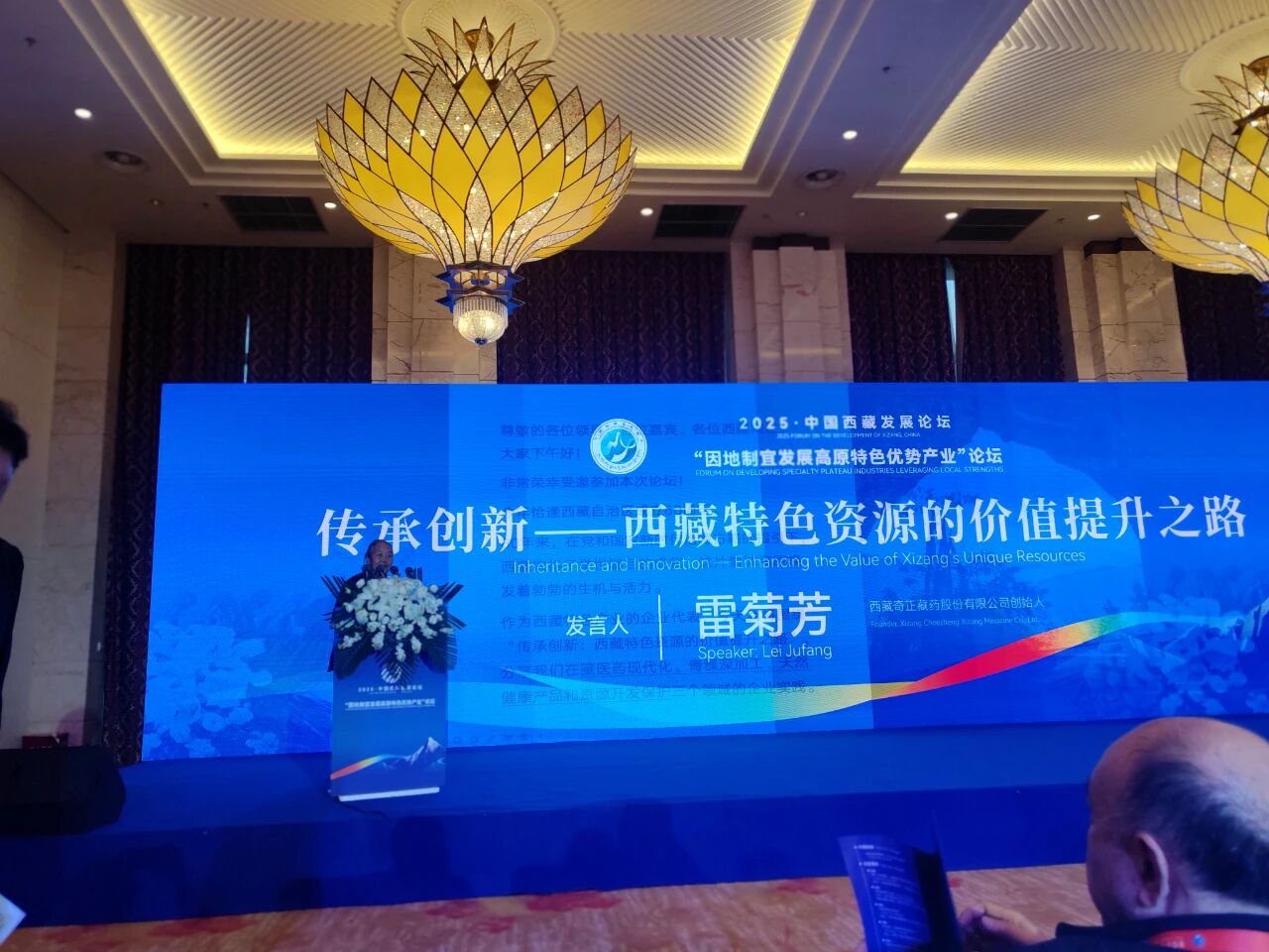 奇正藏药作为西藏特色产业的企业代表受邀参加主题论坛。10月29日下午,在“因地制宜发展高原特色优势产业”主题论坛上,奇正藏药创始人雷菊芳女士作为专题论坛政学企界七位主题演讲人之一,围绕“传承创新:西藏特色资源的价值提升之路”,向论坛嘉宾分享了集团公司在藏医药现代化、青稞深加工、天然健康产品和资源开发保护三个领域的企业实践。