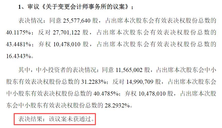 2月13日晚,*ST宇顺发布公告称,公司股东会否决了公司《关于变更会计师事务所的议案》,而今日公司股价却逆势涨停!2024年,*ST宇顺更换了会计师事务所,当年公司年报审计意见为标准无保留意见,而在此前两年,公司年报审计意见均为带强调事项段的无保留意见。参加股东会的中小投资者中,从表决情况来看,大部分反对公司变更会计师事务所。