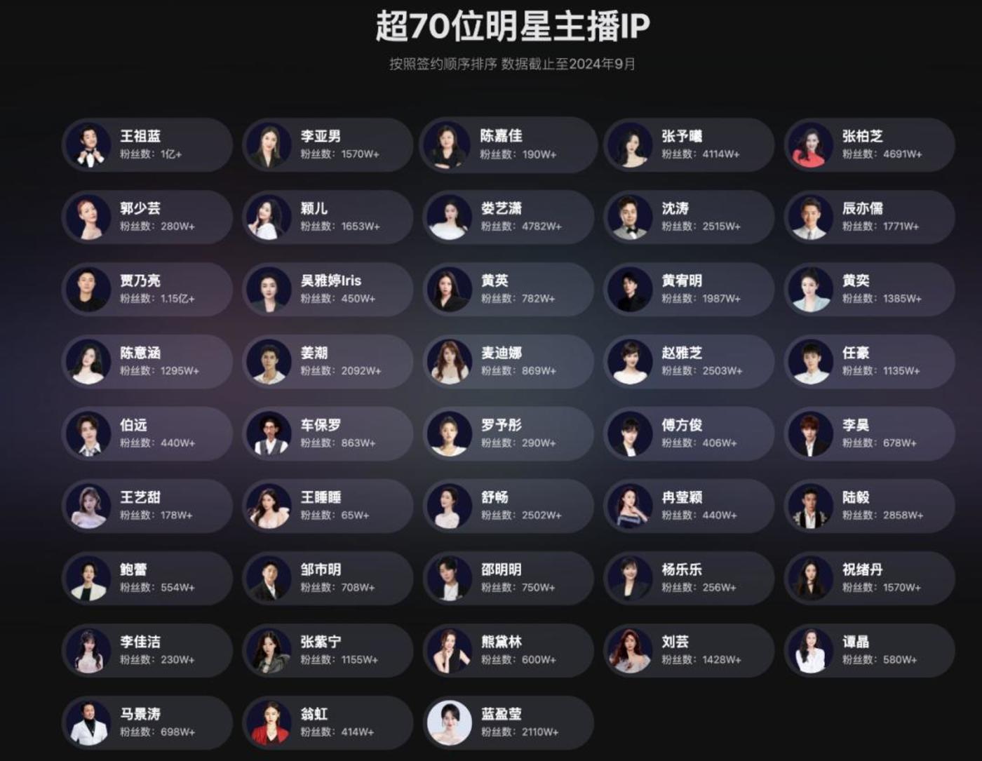 据悉,早在2019年,遥望科技签约王祖蓝开启明星带货模式,随后又陆续签约了贾乃亮、赵雅芝、王耀庆等近40位明星主播,构建起庞大的明星矩阵。遥望科技更多是,给明星配套提供电商直播的一体化方案,包括云仓服务、售后标准化服务和私域服务等。