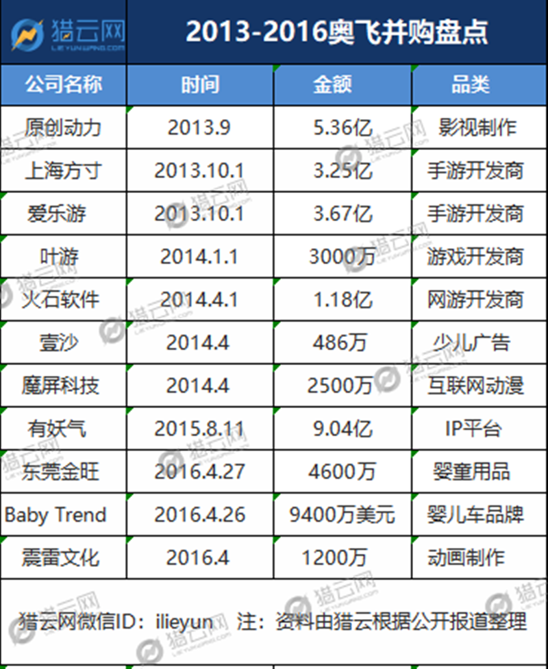 至此奥飞娱乐围绕IP运营,通过收购整合IP+游戏+电影的商业闭环逐渐形成,但是奥飞并没有停下投资的脚步。
