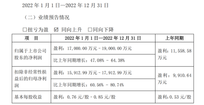 预2022年净利润1.7亿元-1.9亿元