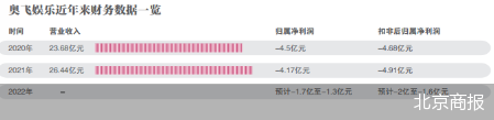 需要指出的是,2020年、2021年,奥飞娱乐实现归属净利润也均为亏损状态,分别约为-4.5亿元、-4.17亿元。