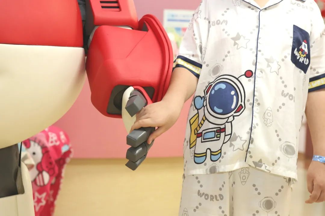 同时,在奥飞娱乐和奥迪联合工会公益授权和捐赠支持下,英雄能量包包体外观及内侧设计有“超级飞侠”IP形象和游戏,并特别配备了“超级飞侠”玩具,为孩子们在住院治疗期间增添更多的童趣和活力。病房里,超级飞侠乐迪为患儿送上特别的英雄能量包,受到孩子们的热烈欢迎。
