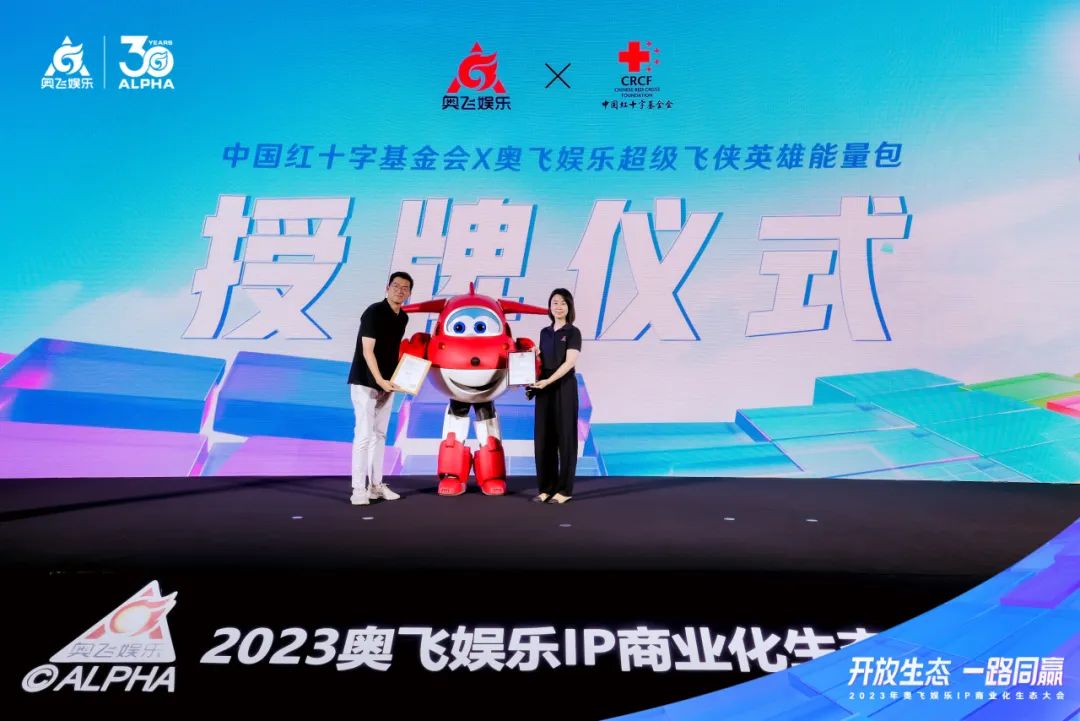 6月30日,在奥飞娱乐2023年IP商业化生态大会上,张忻忻代表中国红十字基金会向奥飞娱乐及奥迪联合工会颁发致谢状和捐赠证书。