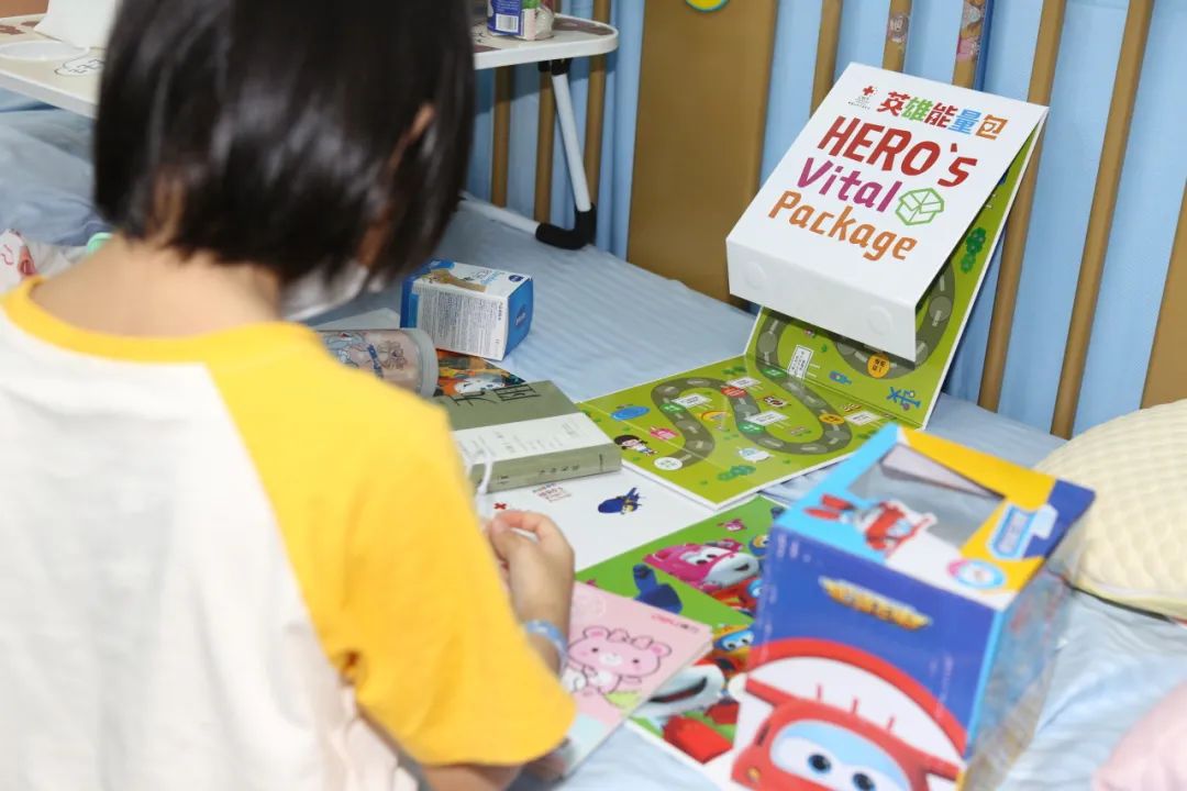 ▲在血液肿瘤科,为患儿赠送英雄能量包
