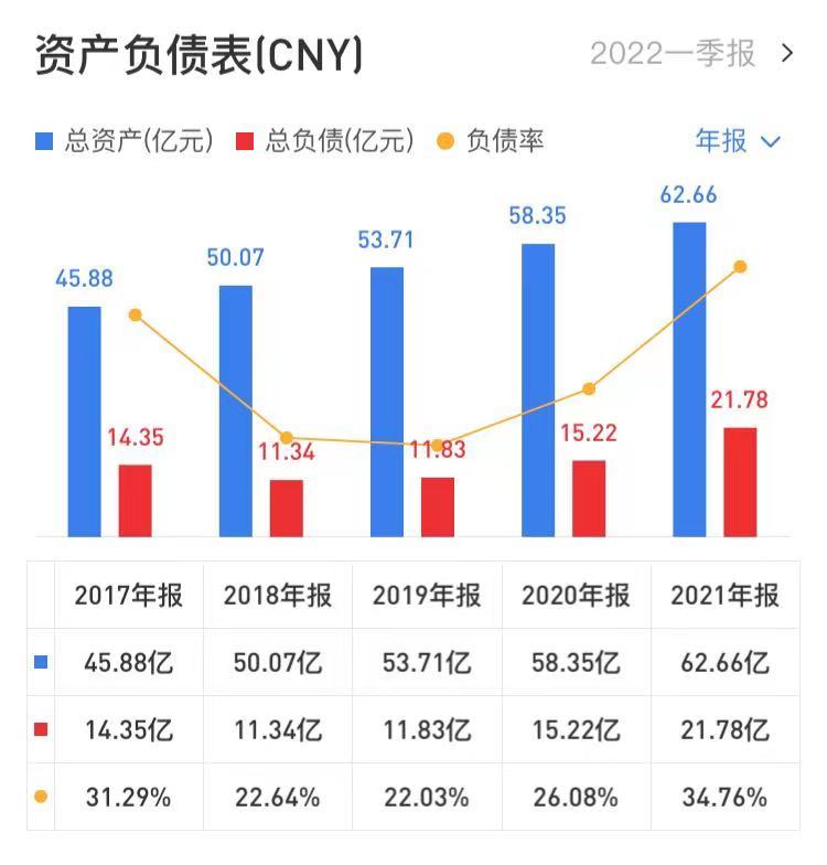 2021年,罗莱生活资产负债率创五年新高,达到34.76%。2017-2021年,其资产负债率分别为31.29%、22.64%、22.03%、26.08%、34.76%。短期借款2.03亿元,货币资金减少9%至11.3亿元。