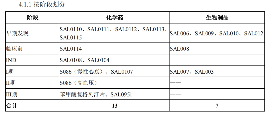 在降血糖领域,有处在III期临床的复格列汀、I期临床的重组胰高血糖素样肽-1-Fc融合蛋白注射液,以及创新小分子产品在研;抗肿瘤领域,有一系列创新生物药处于临床前研发阶段;抗重度抑郁产品SAL0114正处于临床前研发阶段,即将临床试验申报。