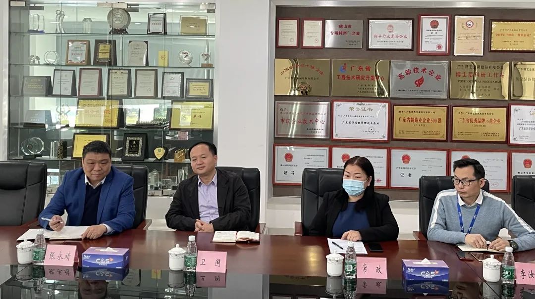 2021日12月30日,顺德区委书记刘智勇带领区委区政府办公室容佰辉、叶国伟一行莅临我司进行实地调研。精艺股份总经理、党支部书记卫国等公司管理层参与了接待,并陪同刘智勇书记参观了精艺企业展厅和支部党群阵地。