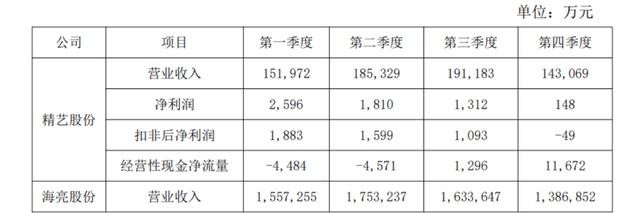 报告期内公司分季度净利润及经营活动产生的现金流量净额与同行业海亮股份分季度指标对比情况如下: