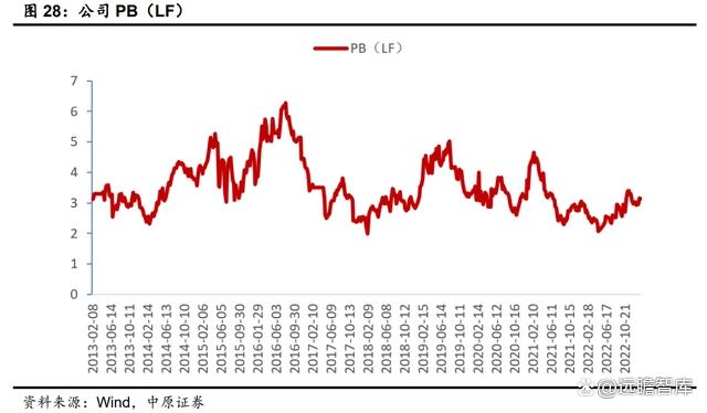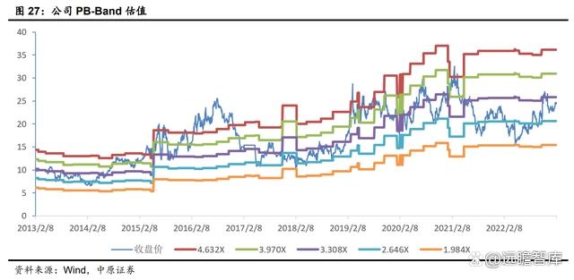 从市净率(PB)来看,公司市净率位于 PB Band 估值中枢位置下方,处于历史相对低位。