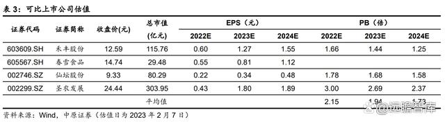 根据公司主营业务情况选取禾丰股份、仙坛股份、春雪食品作为行业可比公司,相对于可比公司,公司 2023 年 PB 仍处于合理估值区间。考虑到公司的行业地位和成长性,未来业绩受到鸡肉产品和肉制品深加工的双轮驱动。