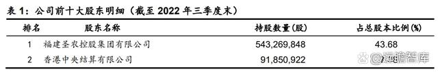 公司股权集中度较高。截至 2022 年三季度末,公司前十大股东合计持股占总股本比例为 64.28%,较 2021 年末下降了 2.21 个百分点,公司股权比例仍相对集中。