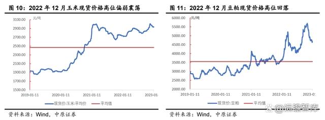 在地缘政治事件和干旱气候的催化下,2022 年玉米、豆粕等农产品价格一路高歌猛进,均到达历史高位,年末价格迎来回调,预计 2023 年玉米、豆粕价格维持高位震荡,进一步上涨空间有限,养殖端成本压力有望得到缓解。