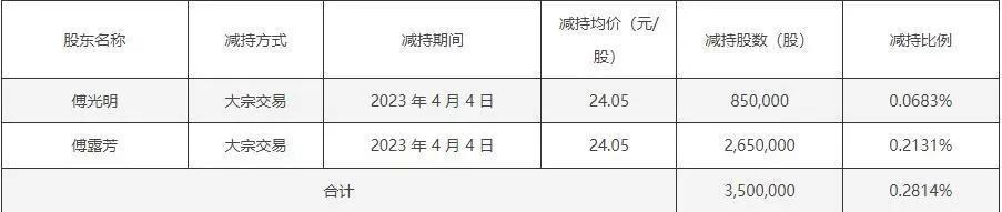 4月6日晚间,A股养鸡大户圣农发展发布公告称,收到公司实控人兼董事长傅光明及其一致行动人傅露芳通知,因个人资金需求,两人于近日以24.05元/股的均价,通过大宗交易方式减持350万股股份,占总股本的0.2814%,合计减持金额可达8417万元。