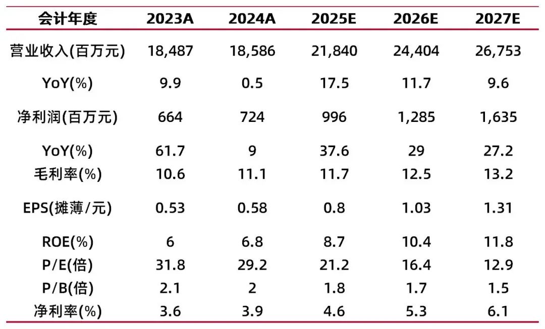我们预计公司2025-2027年归母净利润9.96/12.85/16.35亿元,对应EPS为0.80/1.03/1.31元,目前股价对应2025年PE为21倍,维持“买入-B”评级。