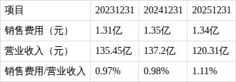 ?销售费用/营业收入比值持续增长。近三期年报,销售费用/营业收入比值分别为0.97%、0.98%、1.11%,持续增长。