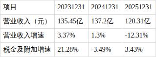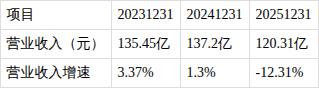 报告显示,公司2025年全年营业收入为120.31亿元,同比下降12.31%;归母净利润为8314.53万元,同比下降8.54%;扣非归母净利润为5880.18万元,同比下降18.97%;基本每股收益0.1151元/股。