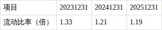 ?流动比率持续下降。近三期年报,流动比率分别为1.33,1.21,1.19,短期偿债能力趋弱。