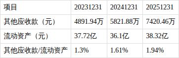 ?其他应收款/流动资产比值持续增长。近三期年报,其他应收款/流动资产比值分别为1.3%、1.61%、1.94%,持续上涨。