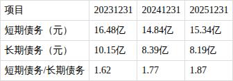 ?长短债务比持续增长。近三期年报,短期债务/长期债务比值分别为1.62,1.77,1.87,长短债务比变动趋势增长。