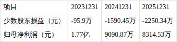 ?少数股东损益为负,归母净利润为正。报告期内,少数股东损益为-0.2亿元,归母净利润为0.8亿元。