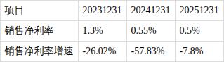?销售净利率持续下降。近三期年报,销售净利率分别为1.3%,0.55%,0.5%,变动趋势持续下降。