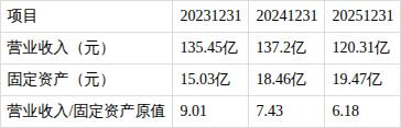 ?单位固定资产收入产值逐年下降。近三期年报,营业收入/固定资产原值比值分别为9.01、7.43、6.18,持续下降。