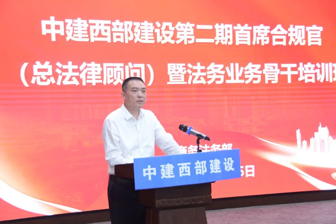 为全面贯彻落实公司高质量发展要求,深入推进依法治企,提升各级单位首席合规官、总法律顾问及法务人员的履职能力,6月24日-25日,中建西部建设举办第二期首席合规官(总法律顾问)暨法务业务骨干培训班。公司党委委员、财务总监、首席合规官邵举洋,助理总经理、总法律顾问刘玉亮出席培训活动。