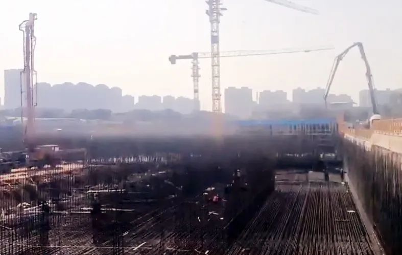 目前主体结构首段底板已完成浇筑