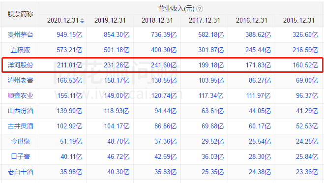 基于深度分销模式以及企业整合的双擎发力,到2018年洋河股份营收规模也达到了最巅峰的时刻,以242亿元的营收稳居业界老三。