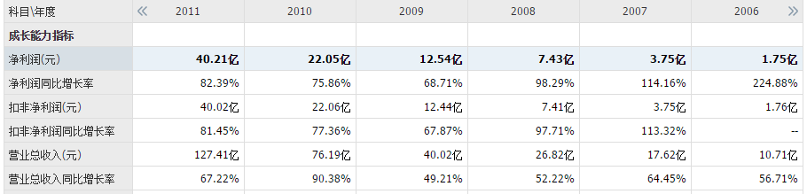 但接下来,洋河股份的表现却十分耀眼。2006-2011年,洋河股份几乎每年营收增速均保持着超50%以上的增速增长。