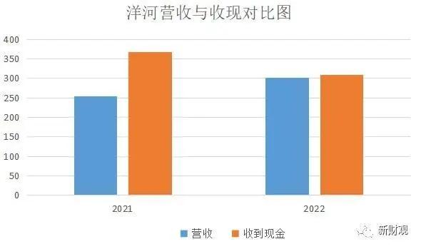 由此引出了一个颇为诡异的现象:洋河股份2021年明明收到了超368亿的现金,营收却仅为254亿元,同期收到的现金远高于营收约114亿元。