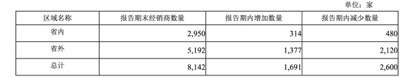 2021年,洋河股份增加经销商共计1691家,减少2600家。