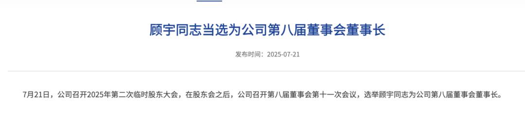 7月1日,洋河股份表示,张联东因“工作调整”辞去董事长职务,顾宇已出任洋河股份党委书记。7月21日,洋河股份官网发布消息,顾宇被选举为公司第八届董事会董事长。